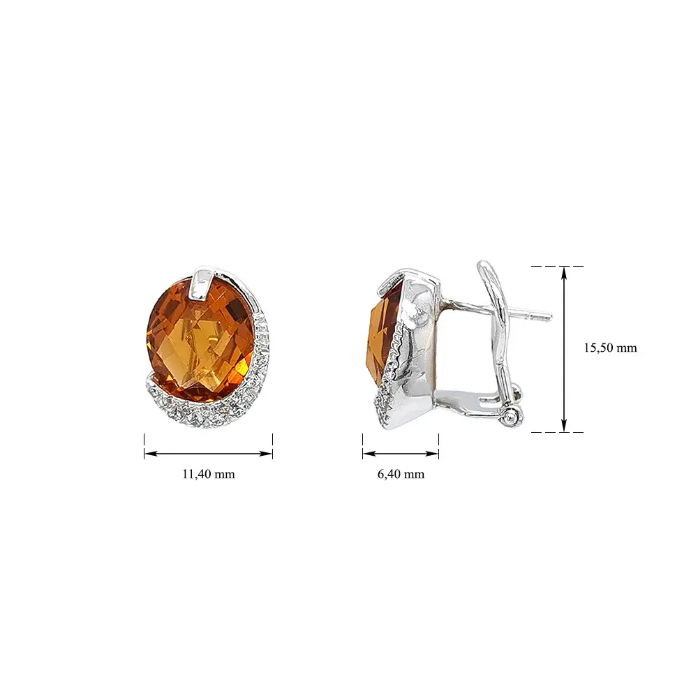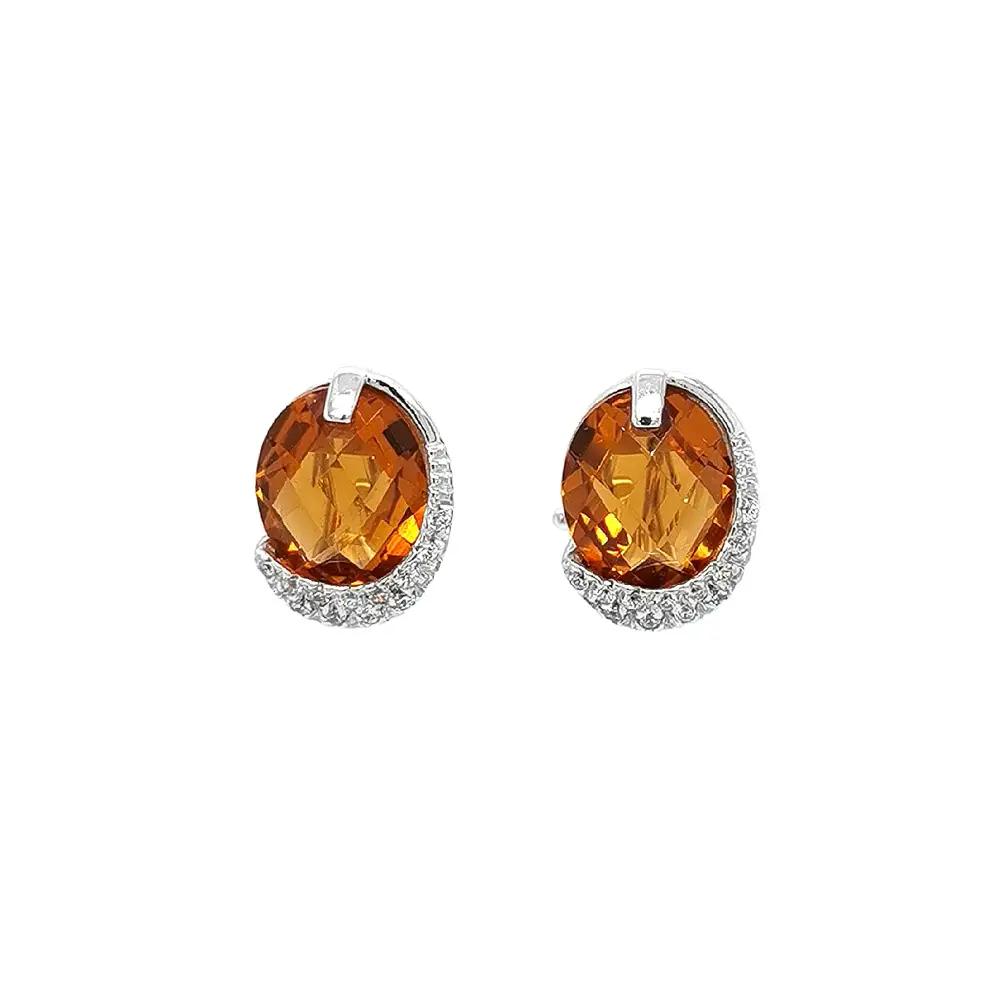 白金黄水晶耳环