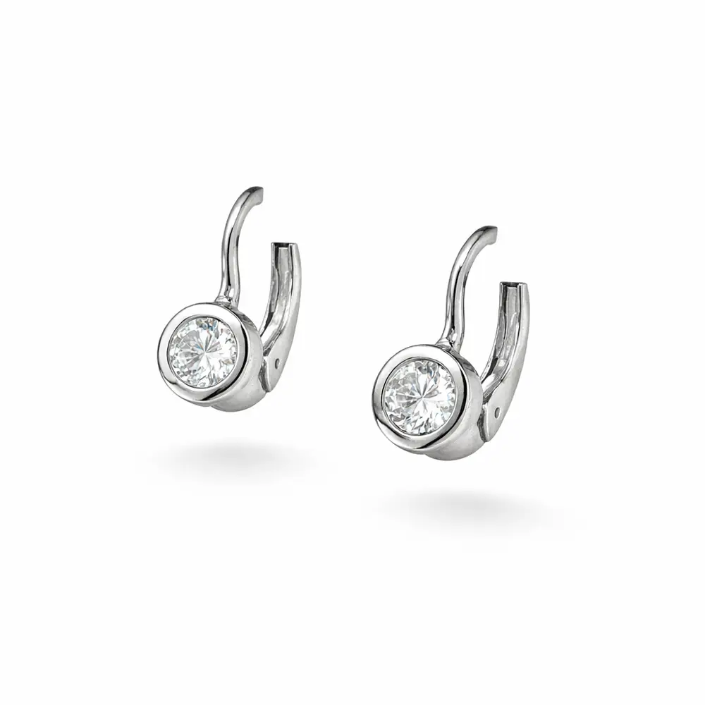 这款精致的白金垂坠耳环采用圆形包镶的中央锆石设计,呈现出纯净的光泽与经典的优雅气质。极简风格突出了宝石的闪耀光彩,整体造型低调而精致,适合日常佩戴,也适用于正式场合。