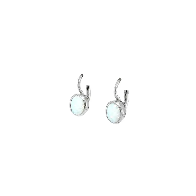 白金耳环镶蛋白石