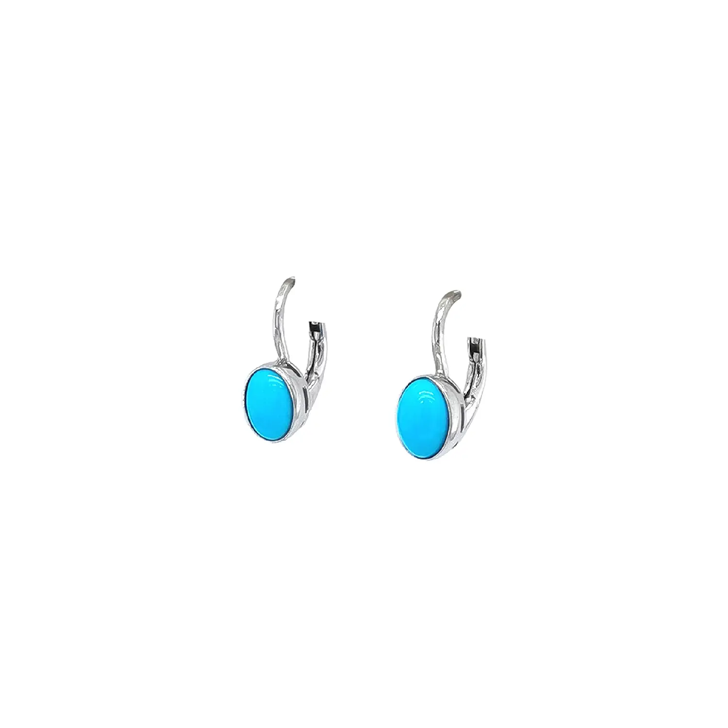 这款优雅的耳环采用 白金材质,镶嵌亮丽的蓝绿色椭圆宝石,展现出现代又经典的气质。宝石鲜明的色彩点亮面部,而白金的光泽为整体造型增添精致感与时尚感。