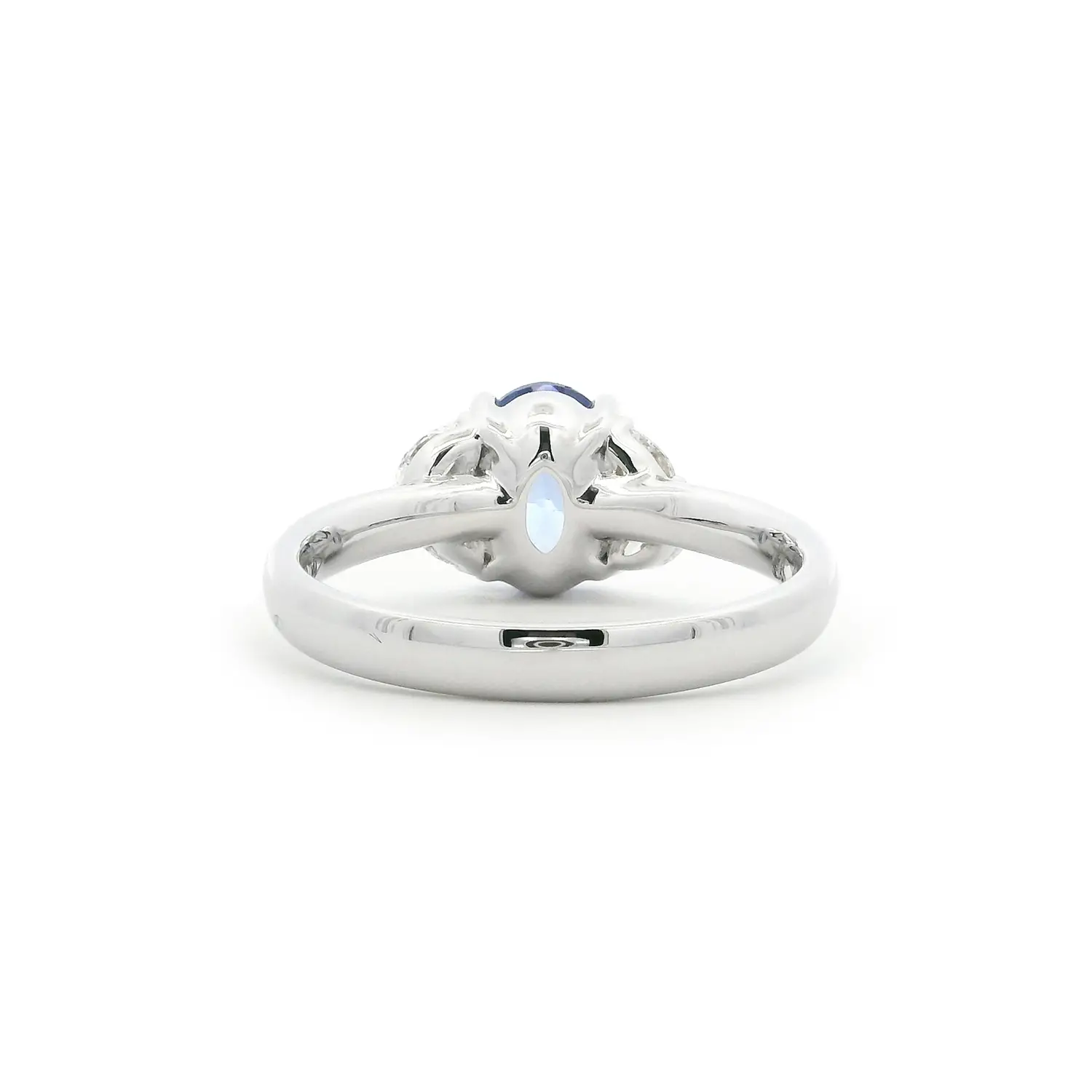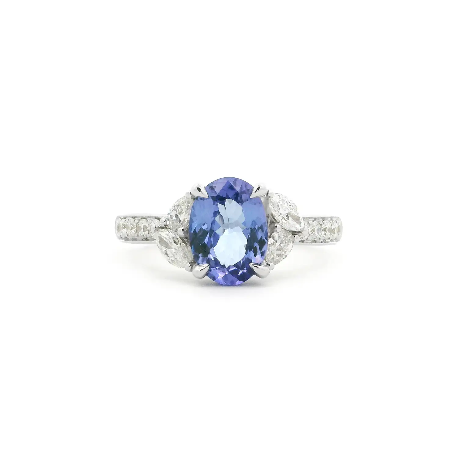 白金戒指,镶嵌椭圆形坦桑石与钻石
