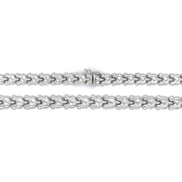 这款女士项链由14K 白金 585/1000精心打造,并饰以华丽的亮面抛光工艺,自然折射光芒,呈现精致光泽。链长 42.5 cm,佩戴时优雅贴合颈部线条,完美衬托锁骨美感。简约而平衡的造型诠释永恒的优雅。