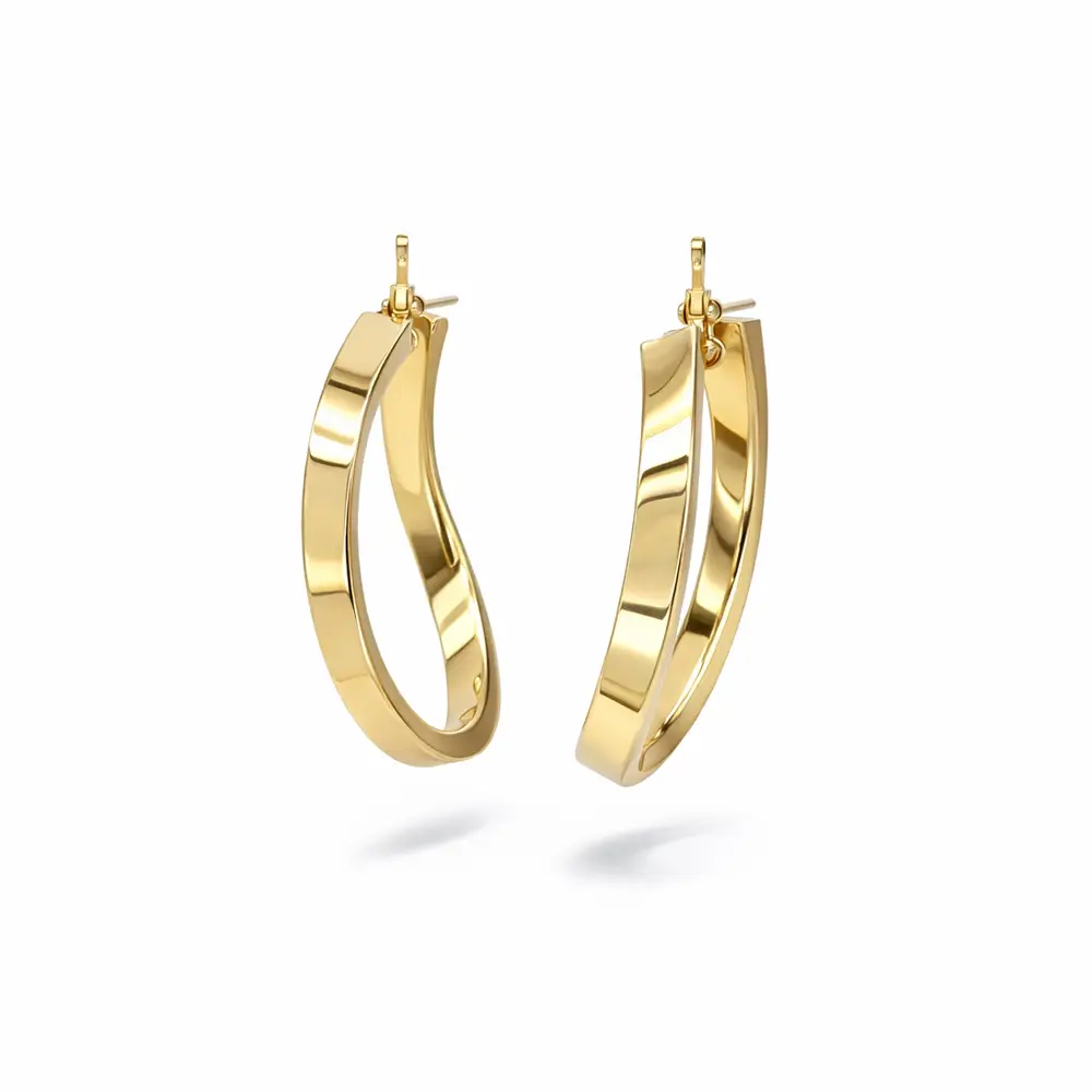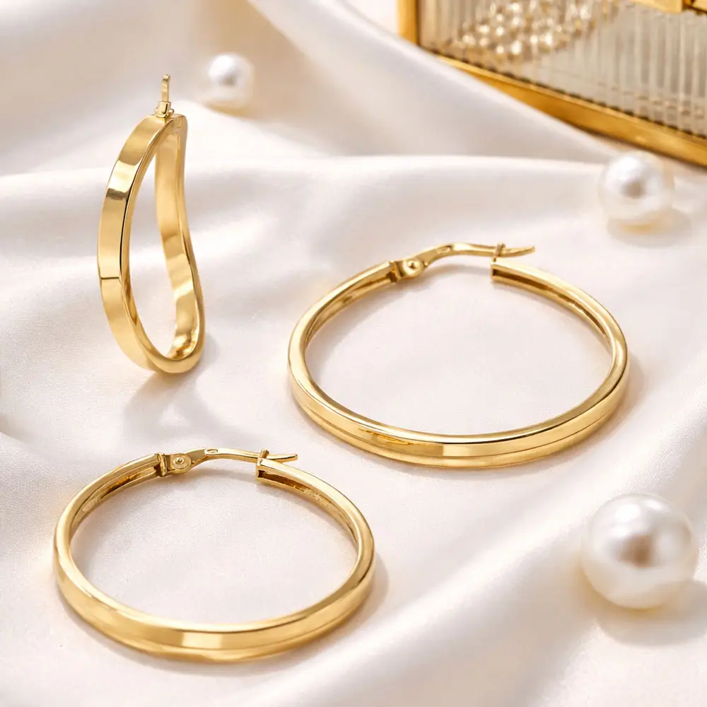 这款黄金圆环耳环以简洁的极简设计呈现,展现出永恒的优雅与精湛工艺。光滑细腻的抛光表面凸显黄金的天然光泽,使耳环适合日常佩戴及正式场合。