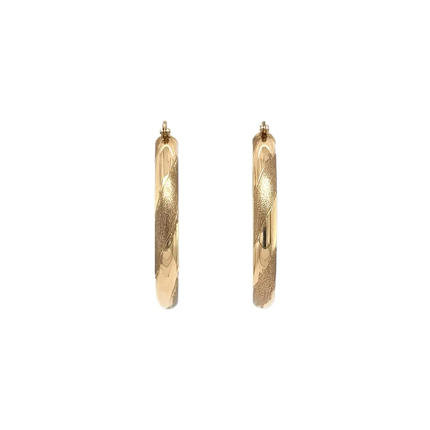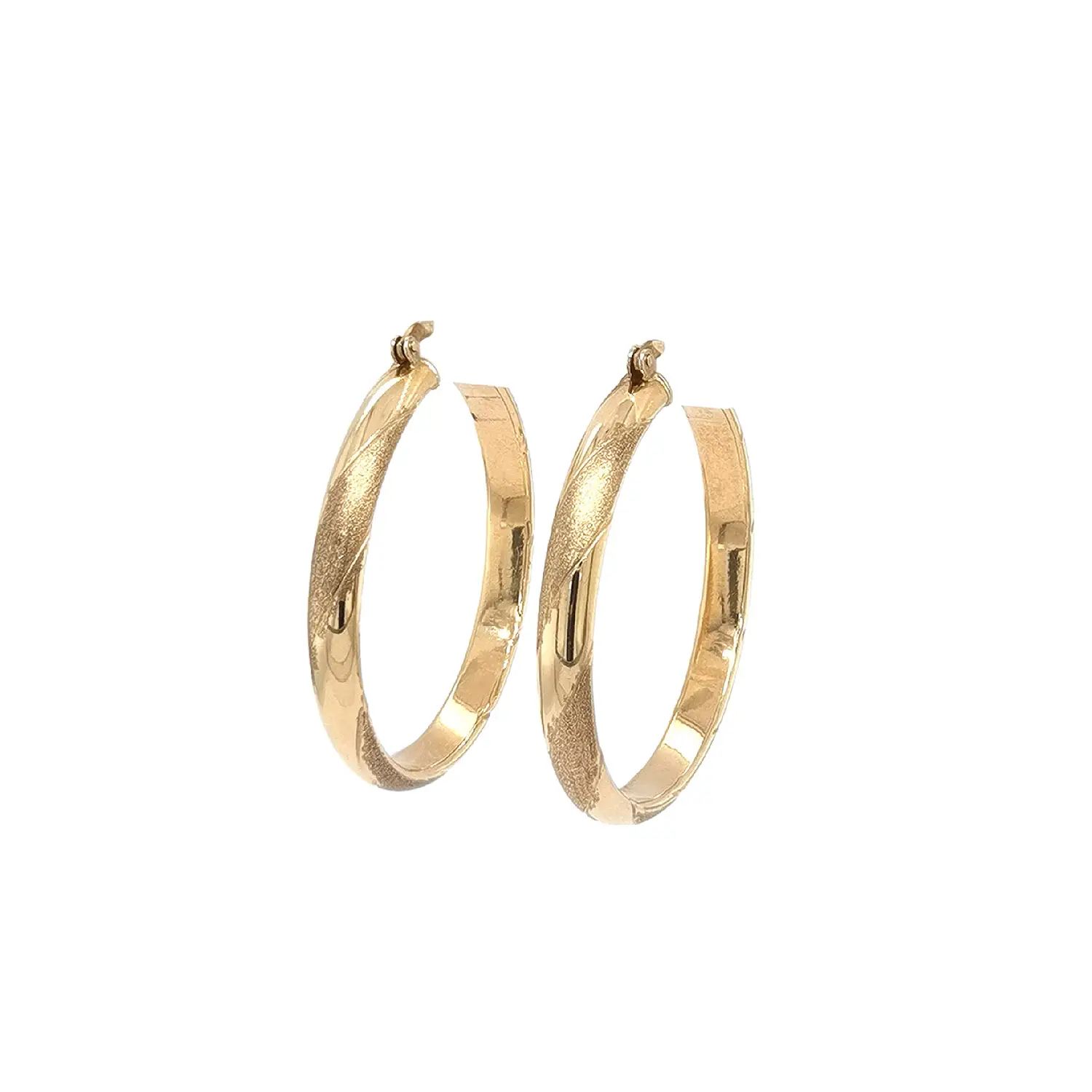 这款优雅的 黄彩金圆环耳环 以精妙结合 亮面与哑光纹理 呈现出现代又经典的风格。两种表面质感之间的柔和对比营造迷人的光影效果,使耳环在每一次动作中都更显亮眼。
