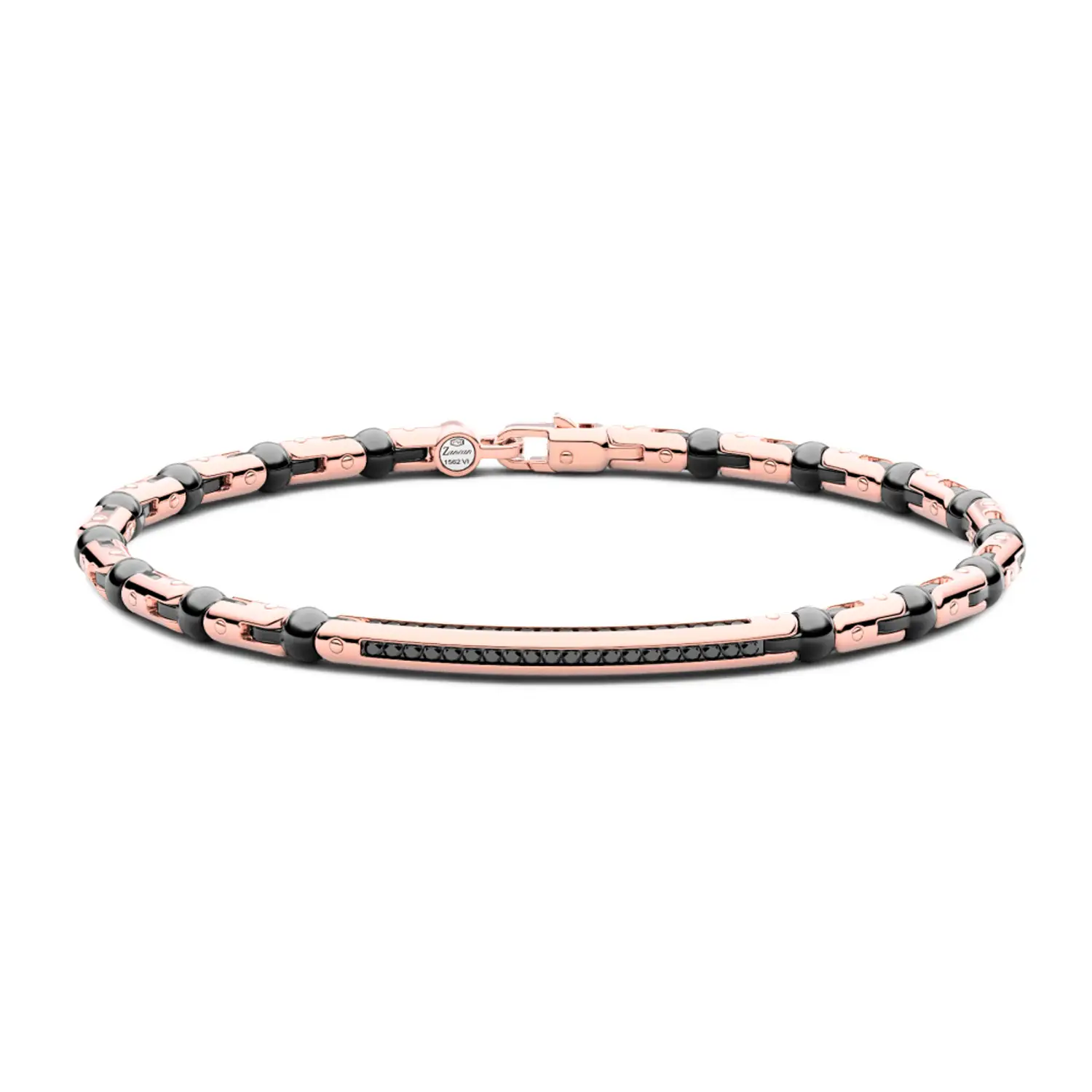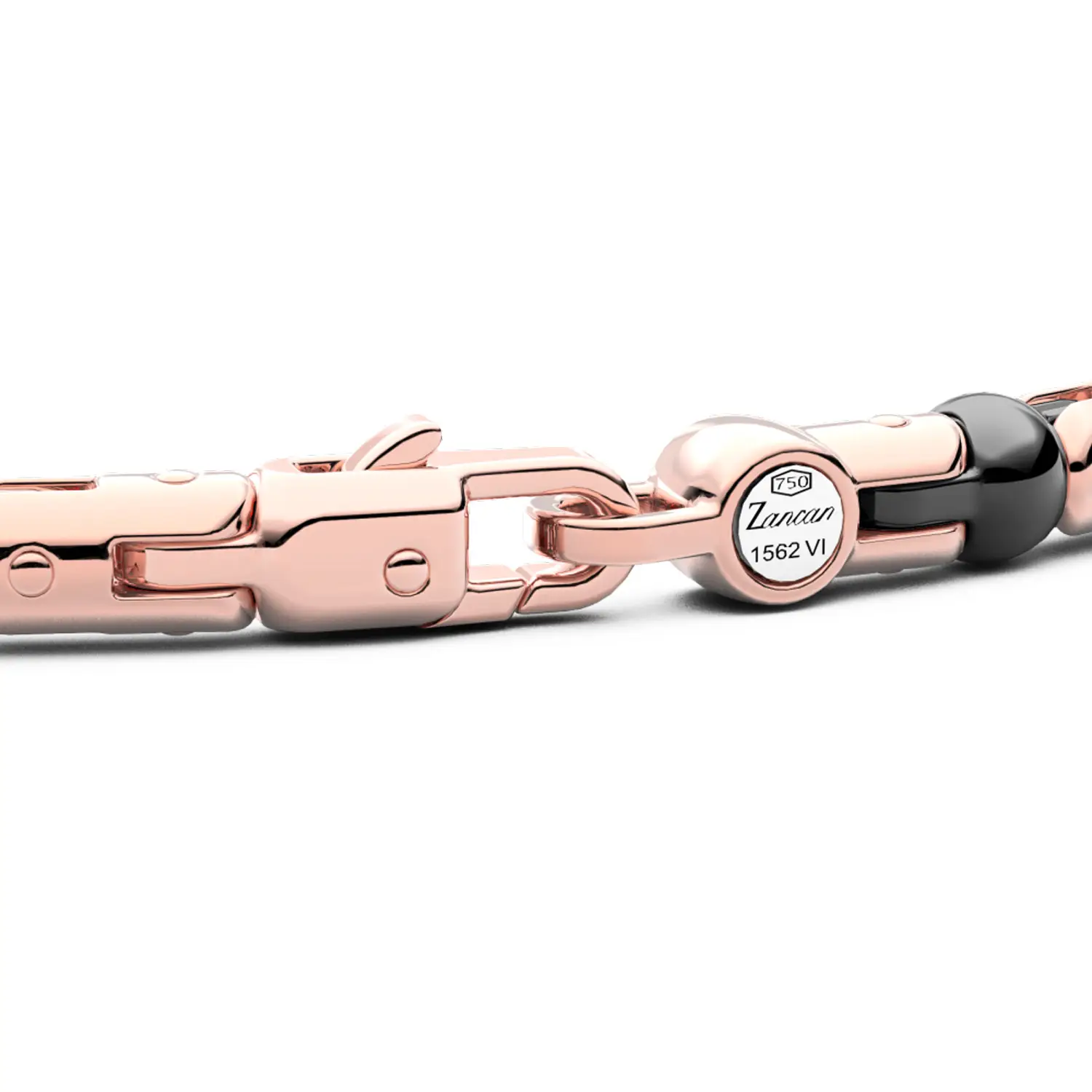 Zancan Ceramikgold 手链 是一款将大胆意大利设计与精密工艺相结合的现代男士珠宝。18K 黄金 与 黑色陶瓷 的鲜明对比,塑造出自信而富有建筑感的奢华风格。几何造型的链节呈现出坚固而优雅的整体轮廓,适合日常佩戴与正式场合。