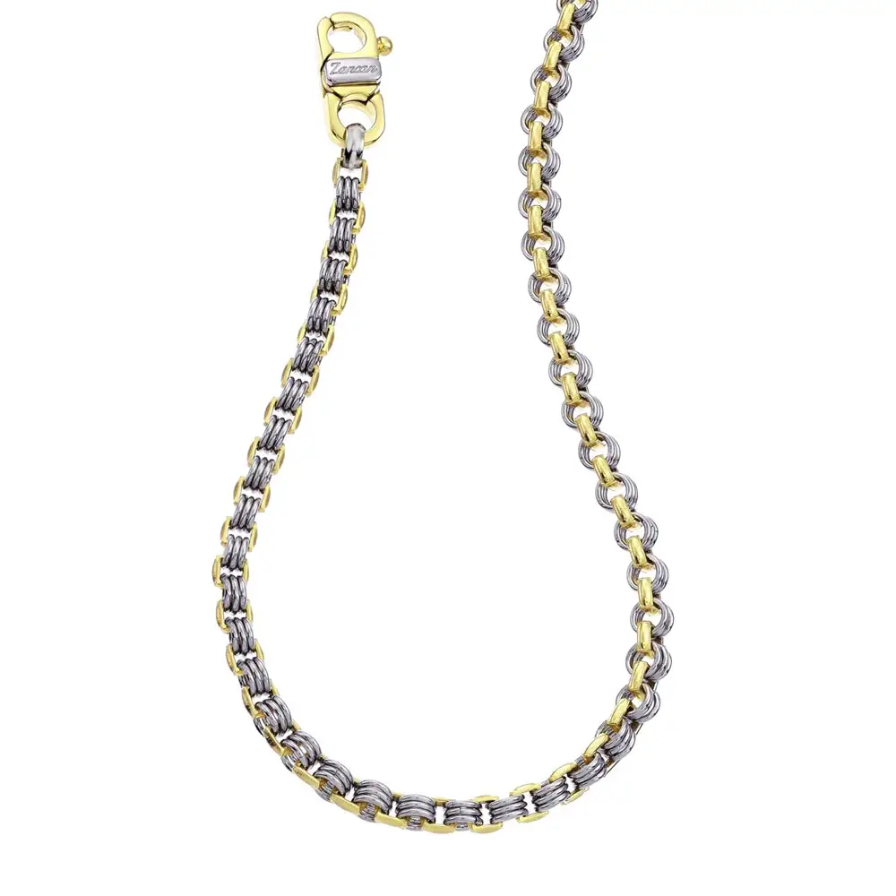 这款 Zancan 项链以隽永设计与意大利精湛工艺呈现优雅格调。白色黄金与黄色黄金 的和谐结合带来精致的色泽对比,使整体外观既现代又不失经典气质。简洁流畅的线条与均衡比例,使其成为日常佩戴的理想配饰。