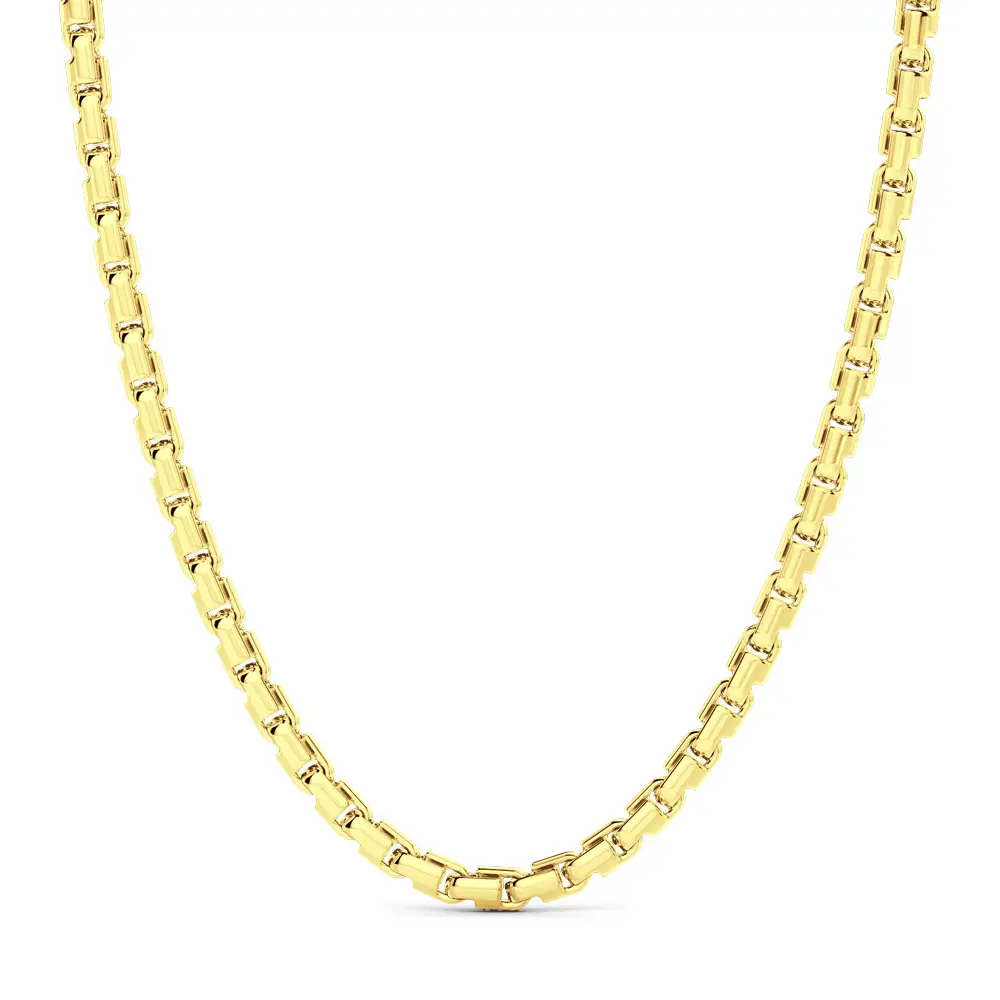 这款 Zancan 男士项链由精心抛光的 18K 黄金沙链节 组成,呈现大胆的几何结构,象征力量、自信以及意大利设计的精致美学。稳固的 18K 白金龙虾扣 形成醒目的对比,为整件作品增添独特的双色奢华质感。