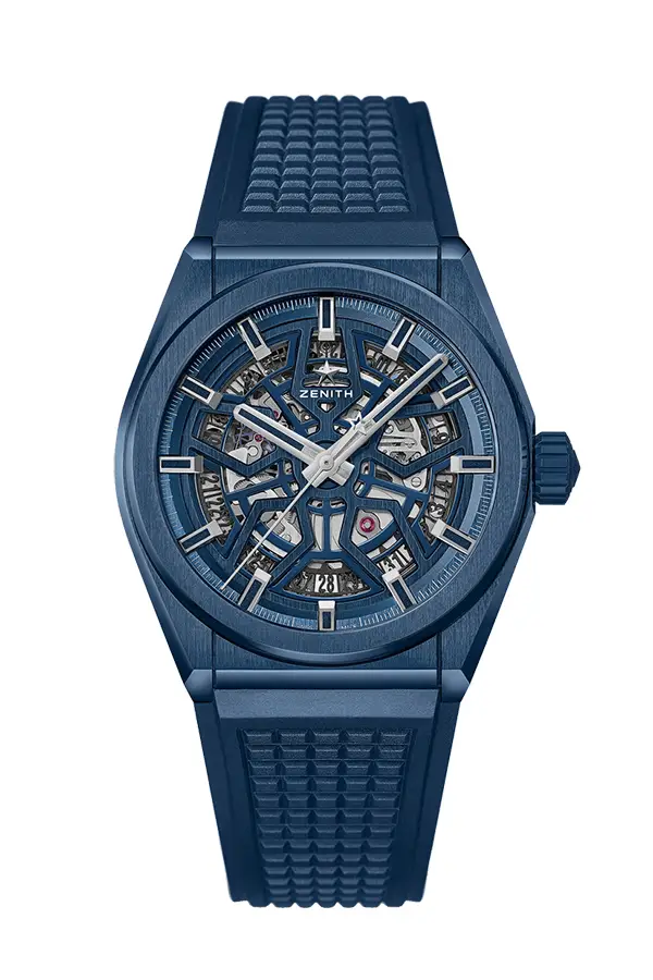 Defy 系列的特点是棱角分明的表壳,通常采用钛、碳或陶瓷材质,镂空表盘可显示高频 El Primero 机芯或革命性的 Defy Inventor 机芯。部分表款的振频高达360,000 次/小时(50 赫兹),确保走时异常精准。
