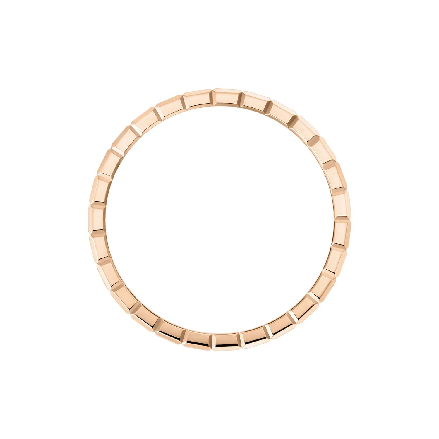 Chopard Ice Cube 玫瑰金钻石戒指展现出现代几何与永恒优雅的完美融合。每一个立方体切面都象征着纯净、平衡与精确,是 Chopard 标志性设计语言的体现。